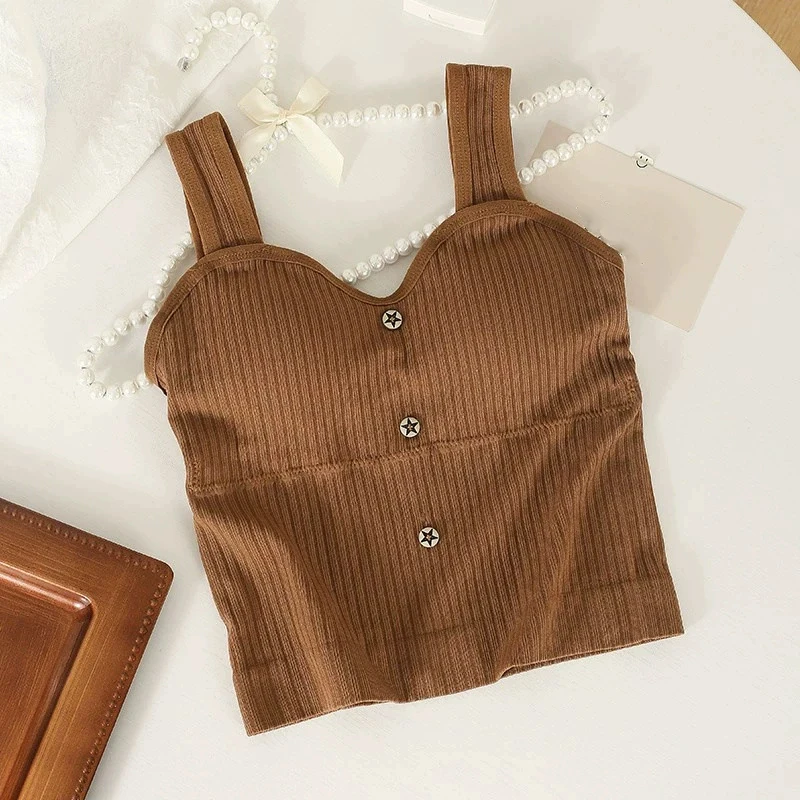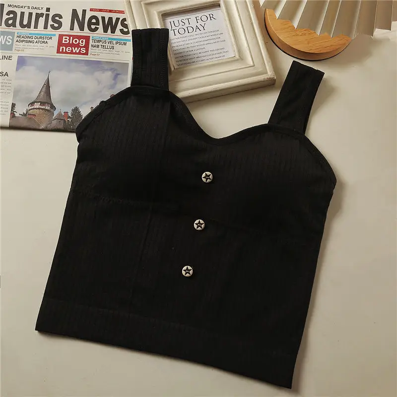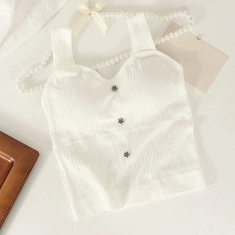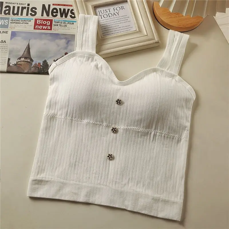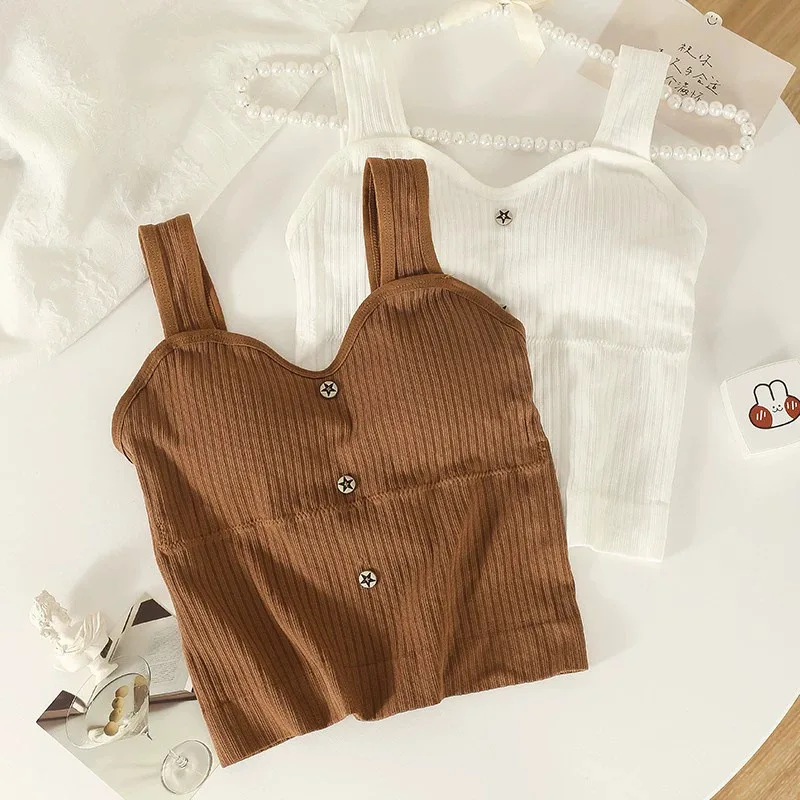 Women's Y2K Cropped tops with bra pads Summer corset Korean suspenders Vest sexy camisole Slim New!